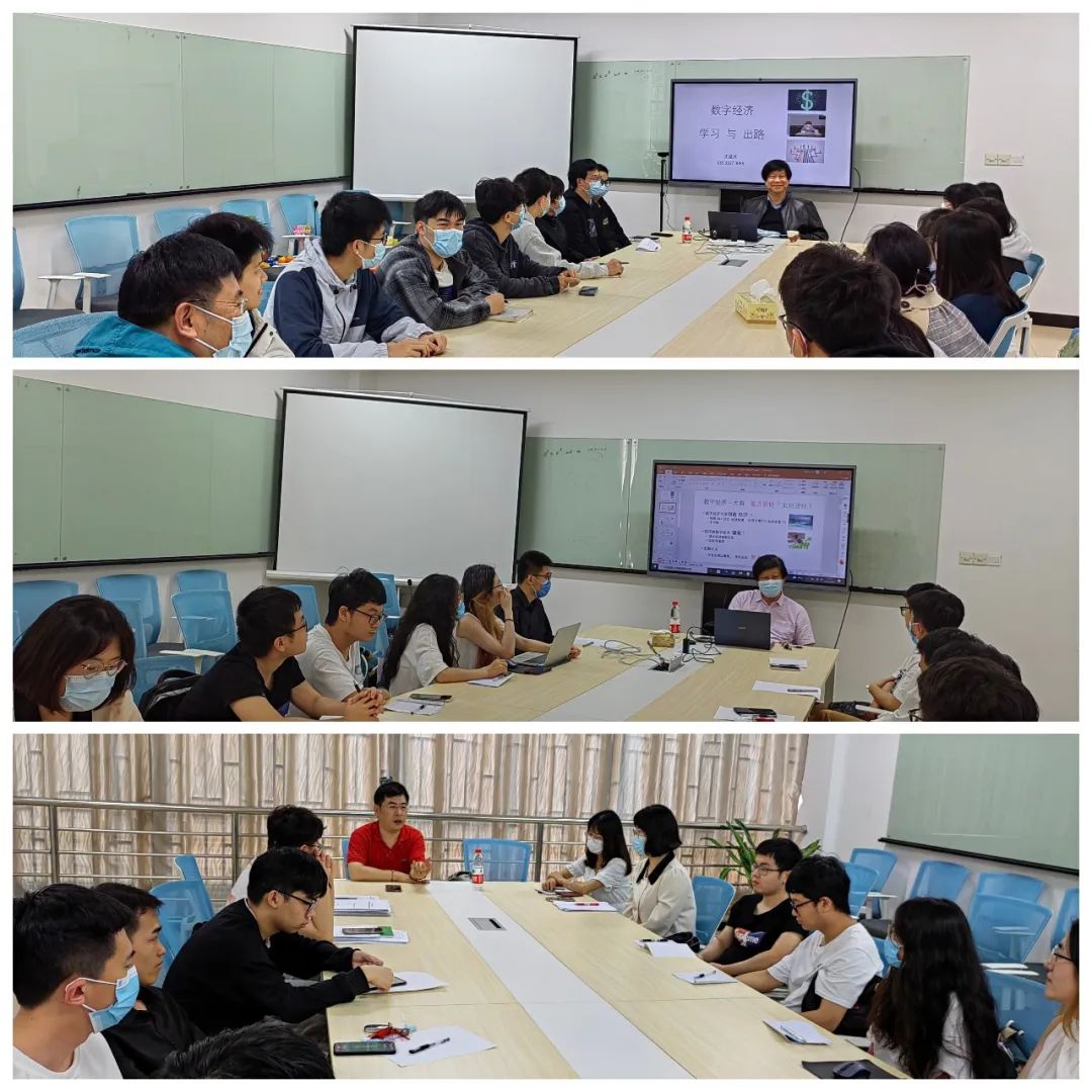 座谈会上,尤建兴教授以“数字经济学习与出路”为主题,深入浅出分析中国数字经济的划分,并以实际案例生动讲解数字经济划分后的就业机会与就业方向,解答了学生在就业中可能面临的问题和困惑。王国忠博士则以自身成长经历作为切入点,向学生分析数字经济专业发展优势和未来发展趋势,鼓励学生根据自身实际和优势将专业基础知识学扎实,提升专业自信心