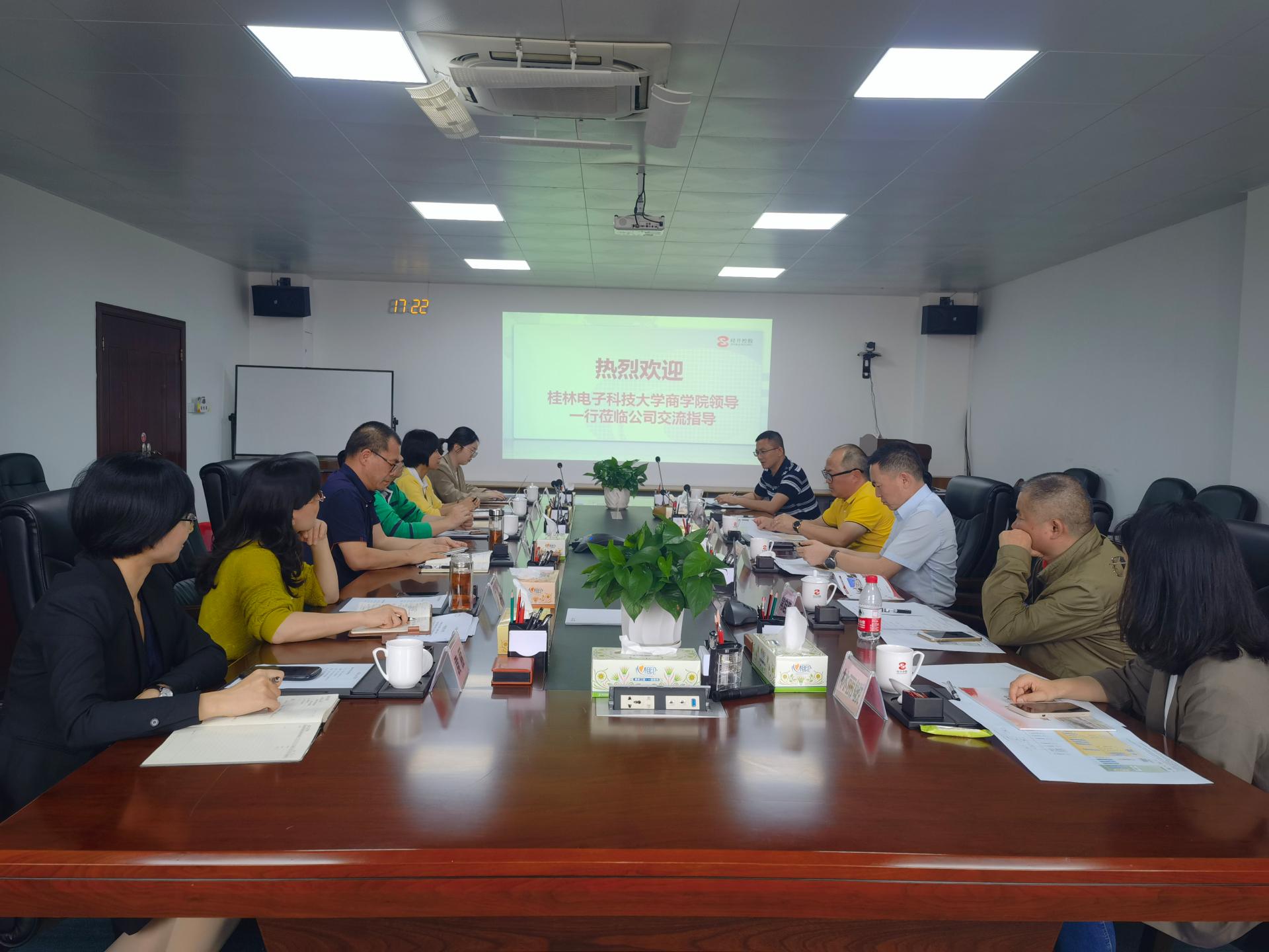 2022年05月26日5月24日,商学院党委书记龚义、商学院院长袁胜军、部分专任教师一行6人赴桂林经开投资控股有限责任公司进行走访调研。桂林经开控股董事长李林辉、独立董事肖岳峰、党委副书记苏虹及其他部门主要负责人参加了座谈。