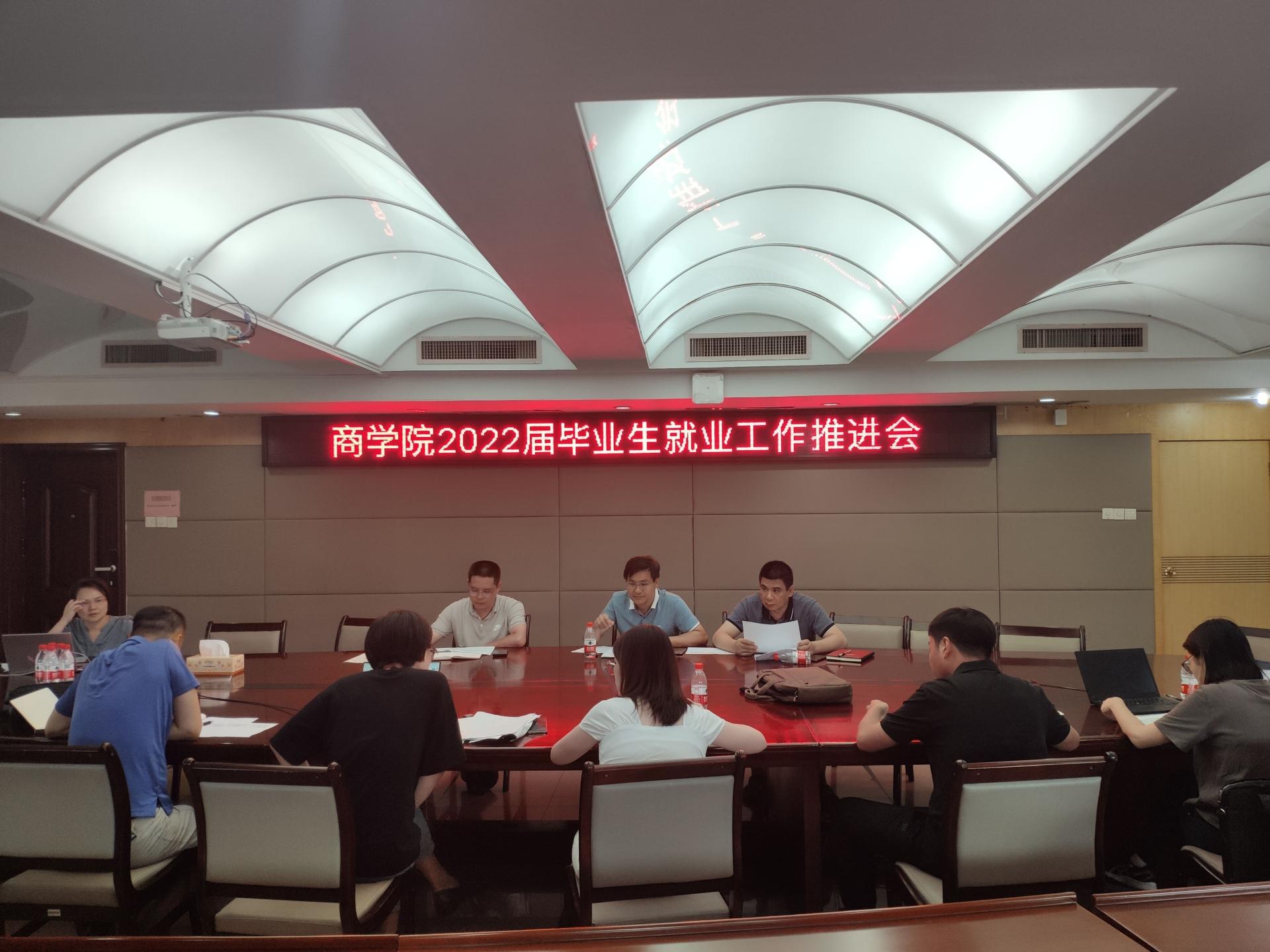 2022年07月09日7月8日下午,商学院在金鸡岭校区10教403会议室召开2022届毕业生就业工作再推进会议,学院党委书记张金顺、院长张发明、党委副书记师晓婧、副院长花均南、院长助理和毕业班辅导员参会。