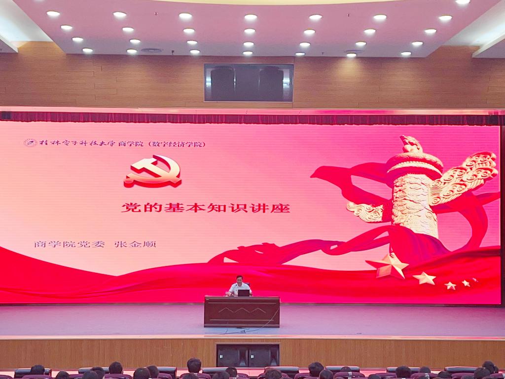 2022年10月27日10月25日下午,商学院在花江校区会议中心大礼堂举办2022级本科新生党的基本知识讲座。党课由学院党委书记张金顺主讲,学院党委副书记师晓婧、新生辅导员及2022级全体新生参加了本次党课学习。