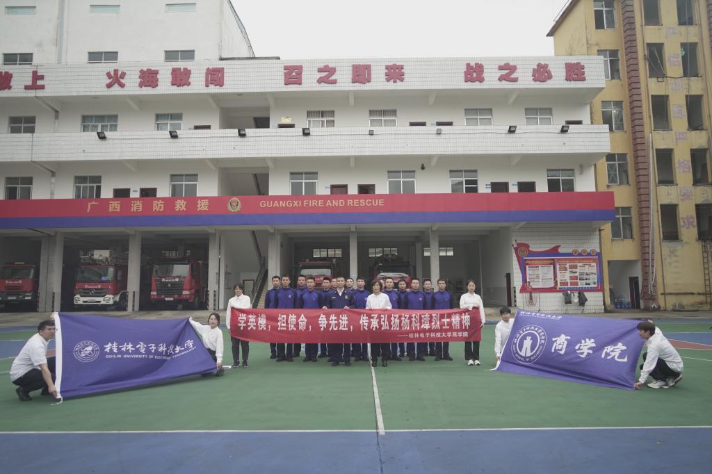 2023年04月05日4月3日至4月4日,商学院在玉林市、桂林市组织开展“缅怀英烈事迹,传承杨科璋烈士精神”系列活动,杨科璋烈士父母,玉林市消防救援支队政治委员宫玉郡、政治部主任王永杰、玉州区消防救援大队政治教导员万秋帆、杨科璋烈士生前共事战友,学院党委书记张金顺、党委副书记师晓婧、各年级辅导员、全体学生参与本次活动。