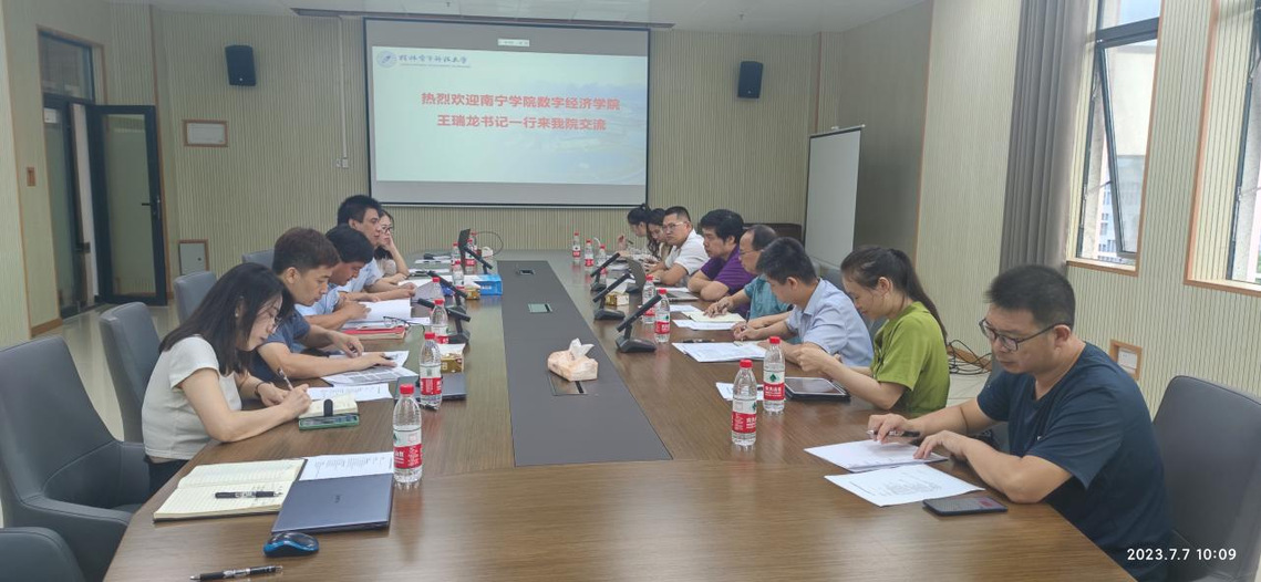 与会双方主要数字经济专业人才培养方案修订、专业课程设置毕业论文指导、师资队伍建设、实验室建设、产教融合、学生社会实践和就业等方面进行了详细交流并表示未来要加强合作交流,培养更多适应时代需求的既懂经管知识又掌握数字技术的复合型人才。