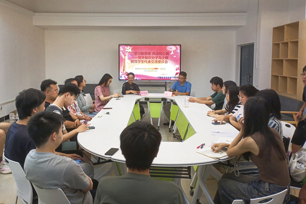 2023年06月14日6月12日,商学院在花江校区学生社区F区35栋109导师工作坊举办“学习新思想共话同心圆”——党外知识分子与少数民族学生代表交流座谈会暨“为民解忧办实事”活动,学校党委统战部副部长张敏,商学院副院长贺星星,辅导员代表,少数民族学生代表参加。