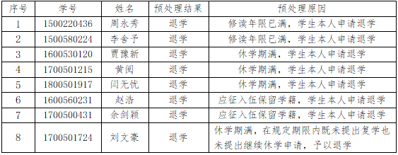 关于拟对商学院周永秀等八名学生进行学籍预处理的公告