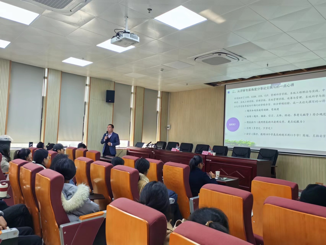 2023年12月05日12月1日,商学院优秀学位论文经验分享交流会在文科楼501会议室及腾讯会议平台成功举办。会议特邀了2023届优秀硕士论文获得者、合肥工业大学在读博士研究生朱姝琪及其导师张发明院长作经验分享。商学院全体硕士研究生共计100多人参会。会议由商学院副院长贺星星主持。