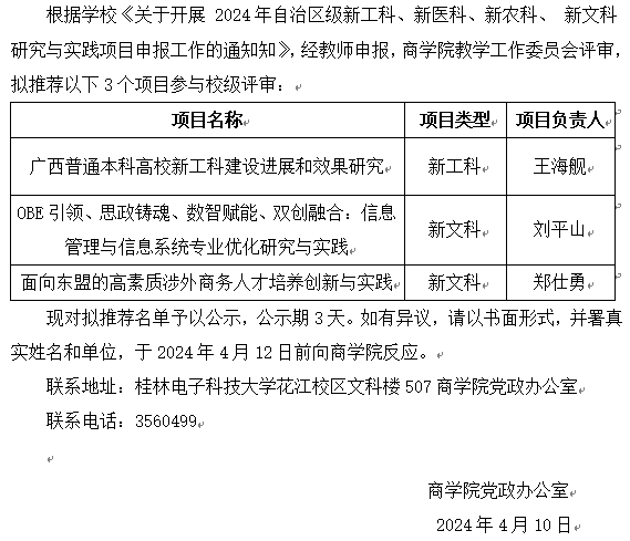 关于2024年自治区级新工/文科研究与实践项目拟推荐名单的公示