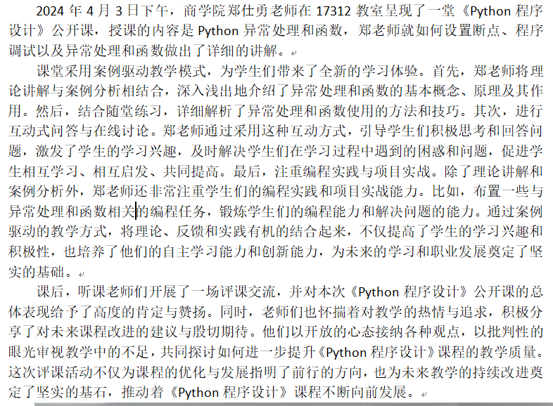 校级教育教学改革课程示范课系列报道——《Python程序设计》
