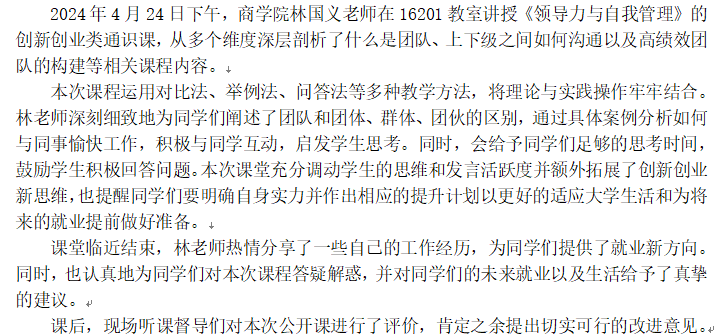 校级教育教学改革课程示范课系列报道——《领导力与自我管理》