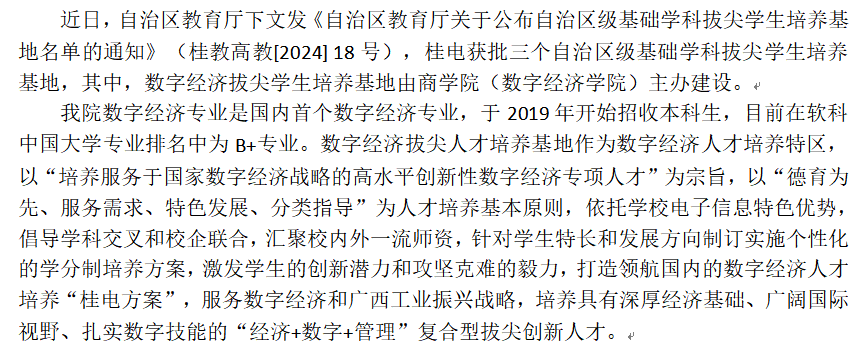 【喜报】我院获批自治区级数字经济拔尖学生培养基地