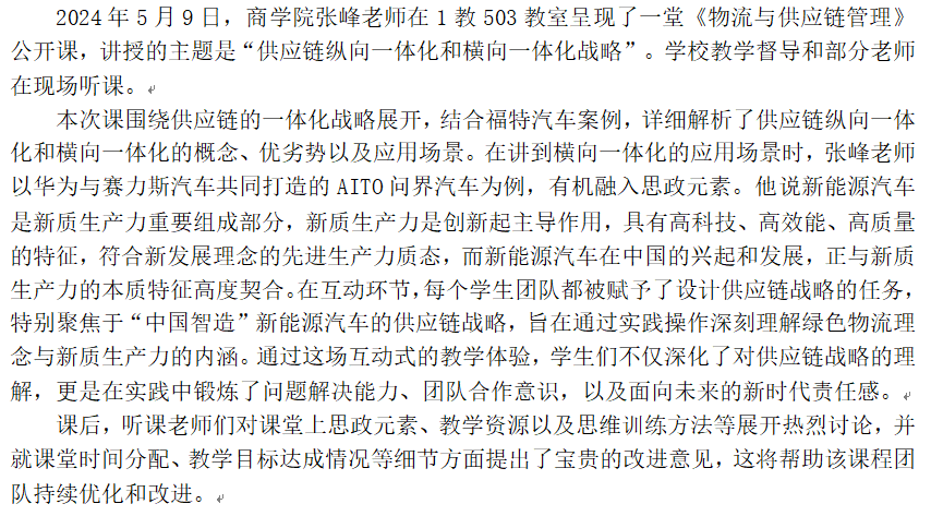 校级教育教学改革课程示范课系列报道——《物流与供应链管理》