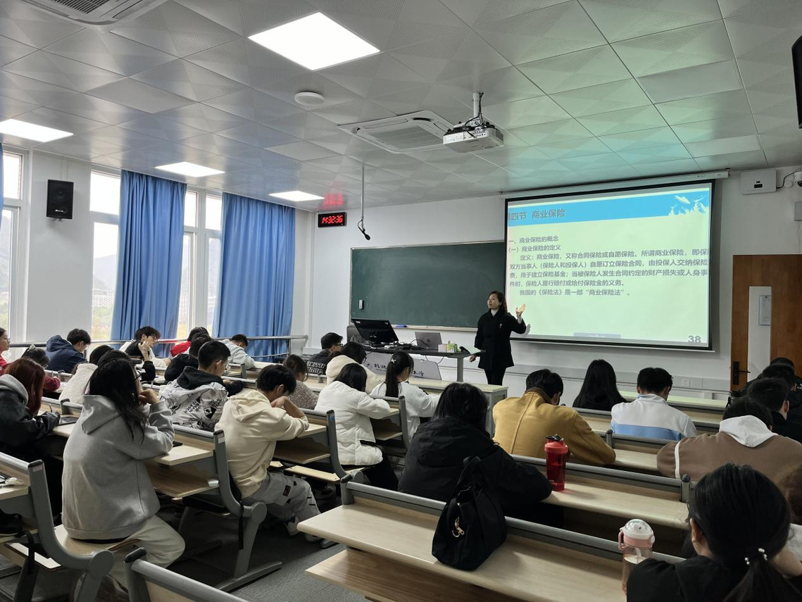 该课程是全校通识选修课,本次授课内容为《商业保险》。彭老师介绍了商业保险的概念、构成要素及保险商品交换的特点,重点讲解了商业保险与社会保险、政策性保险、储蓄、救济等类似制度的不同之处,并运用实际案例对保险公司的五大职能进行了详细阐述。授课过程中,彭老师注重与学生互动,通过提问、讨论、课堂测验等方式及时检验同学们的学习效果,课堂气氛非常活跃。