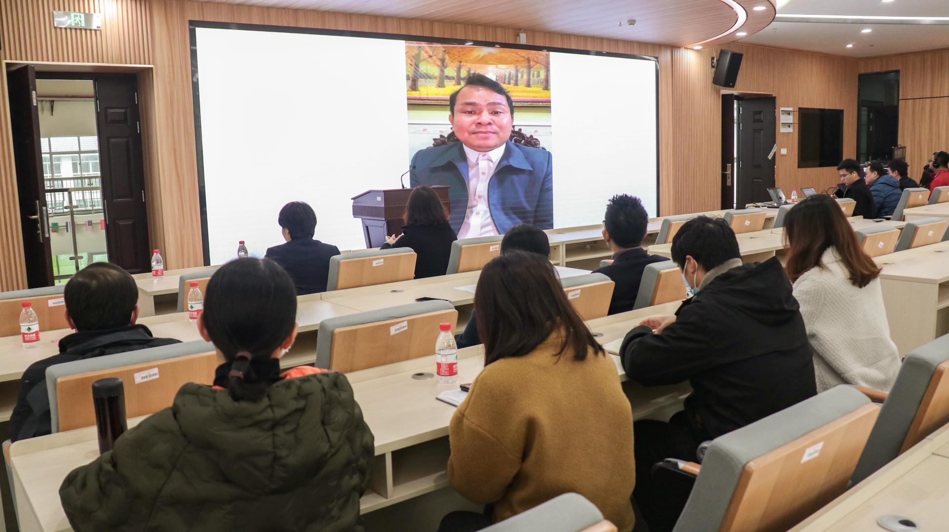 2月28日上午,由教育部中外语言交流合作中心主办,三亿官方官网三亿(中国)_三亿(中国)承办的“云上商务 魅力科技”中国文化体验营“汉语桥”线上团组项目正式开营。柬埔寨国立马德望大学孔子学院柬方院长山姆·莱尼,中方院长易永忠出席活动。三亿官方官网三亿(中国)_三亿(中国)国合处、国际学院、外国语学院相关人员、师生代表及来自柬埔寨和其他各国的百余名汉语学员参加活动。