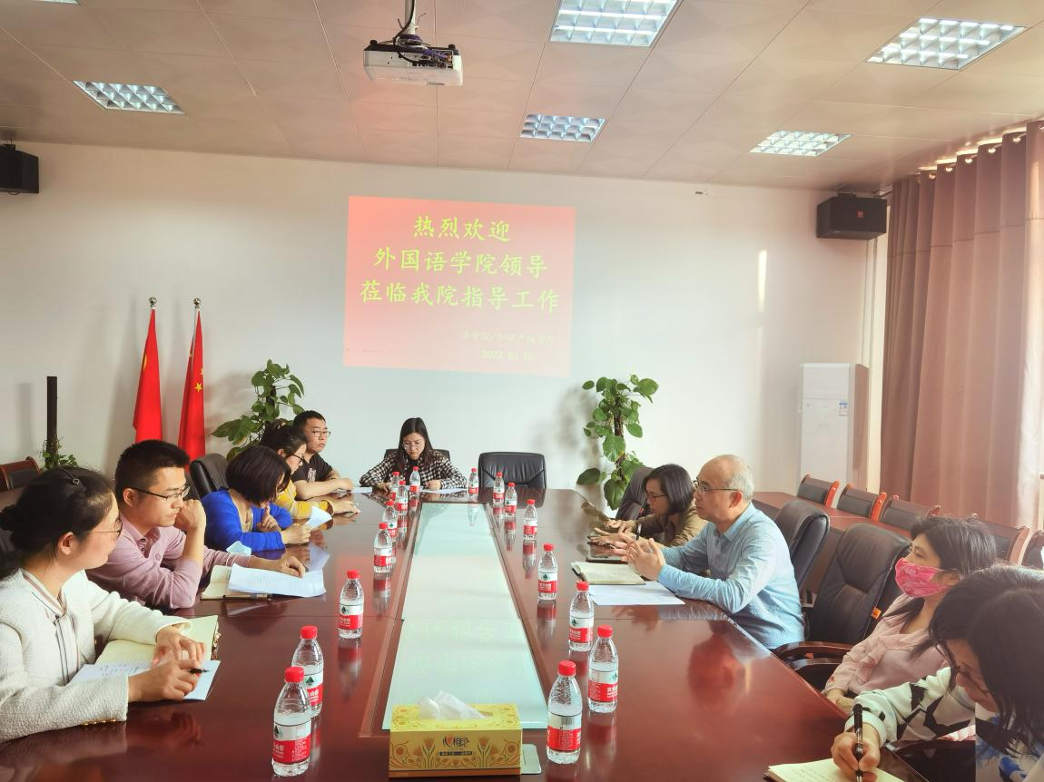 3月15日下午,我院韦储学副院长带队到法学院就大学英语课程进行深入调研。双方领导、担任大学英语的授课教师以及法学院辅导员参加本次调研会。双方围绕大学英语教学、四级考试指导、晨读领航以及学生英语学习能力提升等方面进行了交流,均希望通过此次交流活动促进彼此之间的合作。