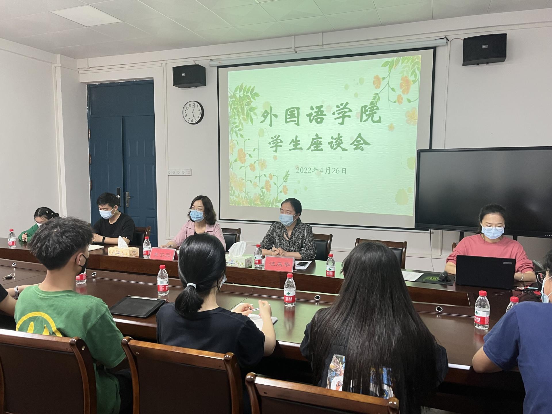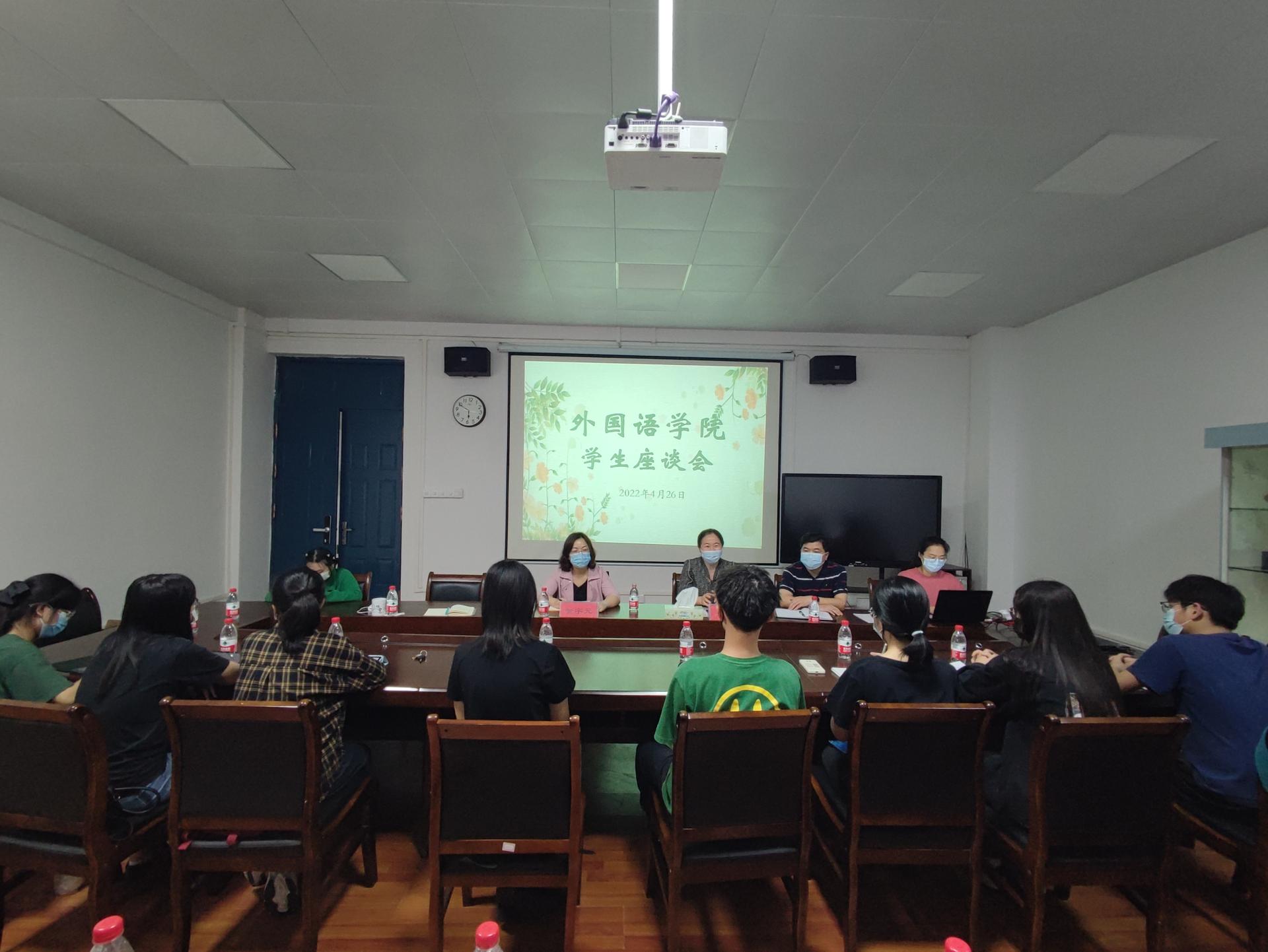 4月26日下午,外国语学院在第三教学楼3408会议室召开本科生座谈会。学院党委书记杨丹江、院长黄宇元、副院长汪庆华以及全体辅导员及各年级学生代表参加座谈会。