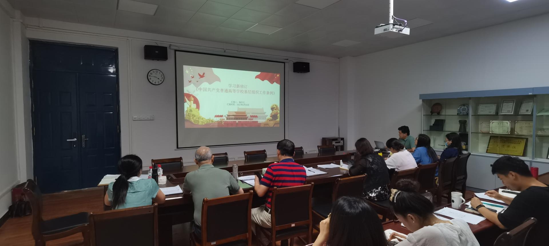 6月20日下午,外国语学院党委在3408会议室组织开展《中国共产党普通高等学校基层党组织工作条例》专题学习会议。会议由学院党委书记杨丹江主持,学院全体党委委员、全体党支部书记参加会议。