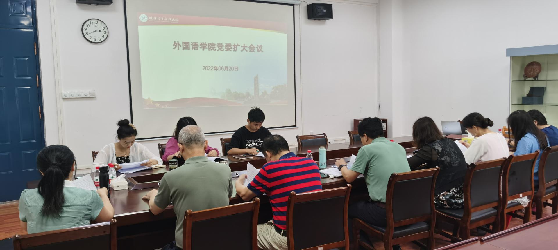 6月20日下午,外国语学院在花江校区三教408会议室召开党委扩大会专题研究党建工作。会议由学院党委书记杨丹江主持,学院全体党委委员、支部书记参加会议。
