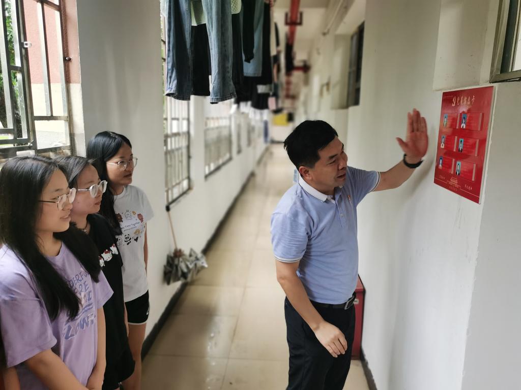 为进一步增强学生党员的责任感、使命感,强化党员意识,6月22日下午,外国语学院党委书记杨丹江,党委副书记段筱雨带领辅导员深入学生宿舍开展“党员身份亮牌活动”。
