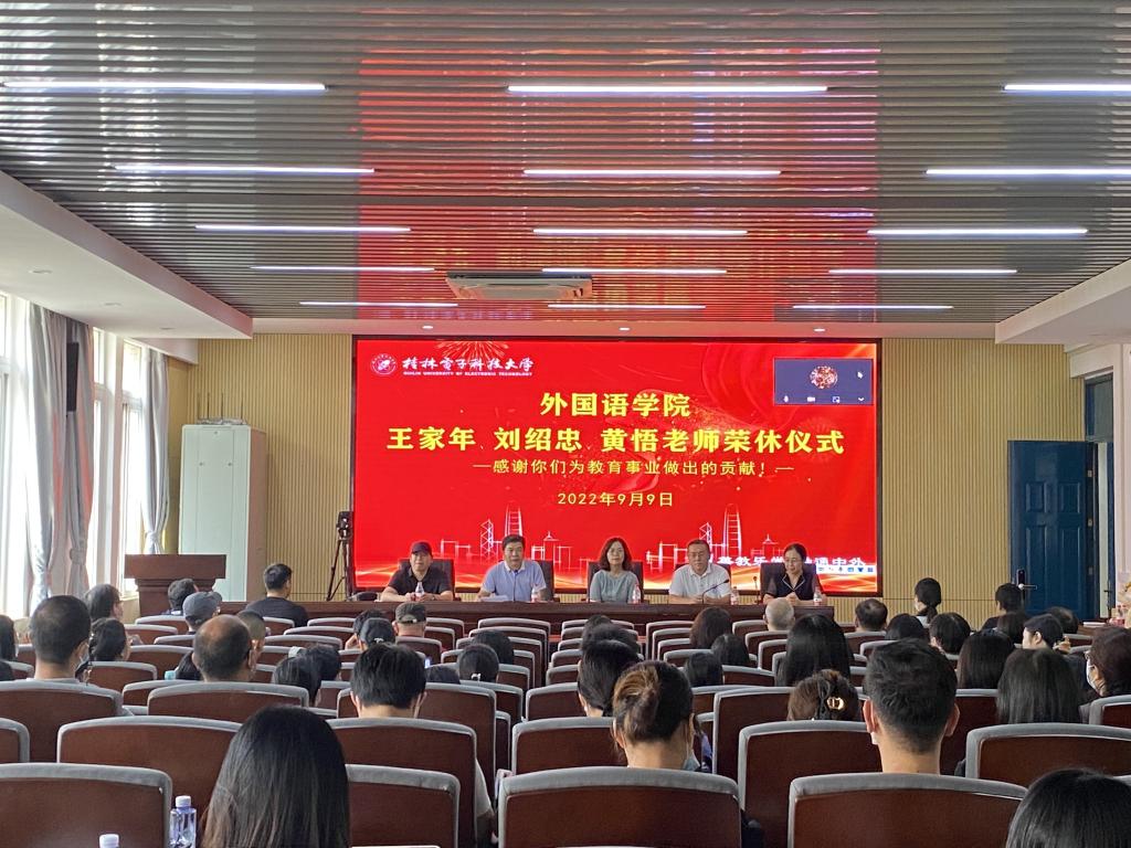 9月9日下午,外国语学院在花江校区3教报告厅举行2022年度教职工荣休仪式,学院领导班子成员、全体教职工参加仪式。仪式由学院党委书记杨丹江主持。