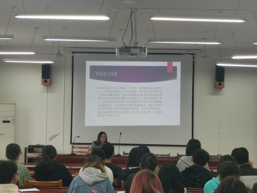 11月16日,日语系2019级毕业论文启动会在外国语学院3505会议室召开。本次启动会由日语系主任彭慧老师主持。彭老师为同学们解读了进行毕业论文写作的目的、意义和要求,说明了本次毕业论文工作的具体进度和安排,认真解答了同学们提出的问题,最后号召同学们要本着诚信认真的态度踏踏实实地完成大学四年最后一门课程。