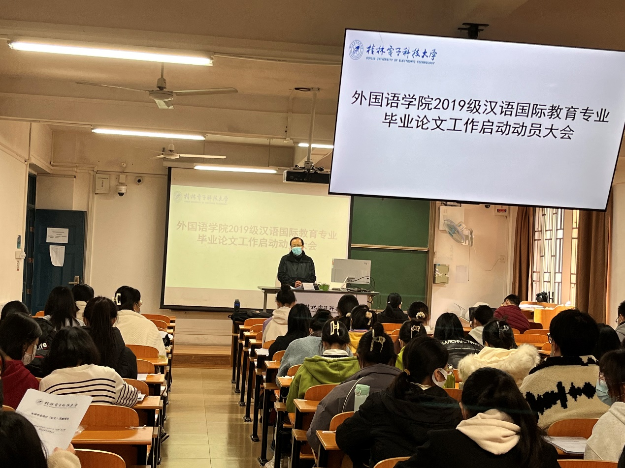2022年12月9日,外国语学院汉语国际教育系在3104举行2019级汉语国际教育专业毕业论文工作启动动员大会。汉语国际教育专业全体教师和2019级全体学生参加了本次大会,会议由系主任张林老师主持。