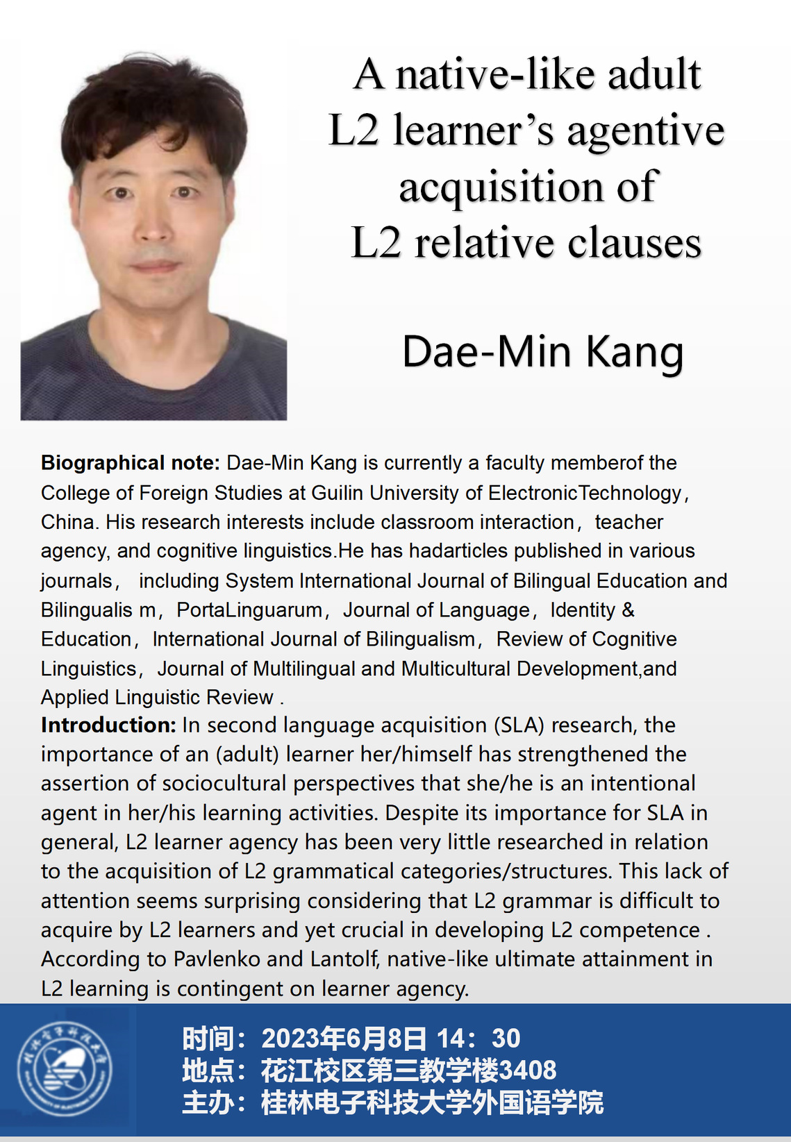 【第24期花江语坛】A native-like adult L2 learner’s agentive acquisition of L2 relative clauses