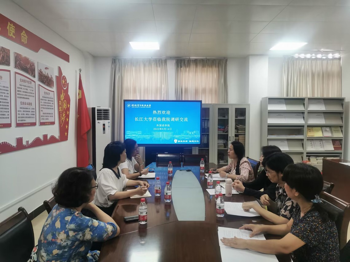 6月14日下午,长江大学潘翠琼教授率队一行三人到我院英语系调研交流,英语系主任、专业负责人及教师代表参加了本次调研活动。