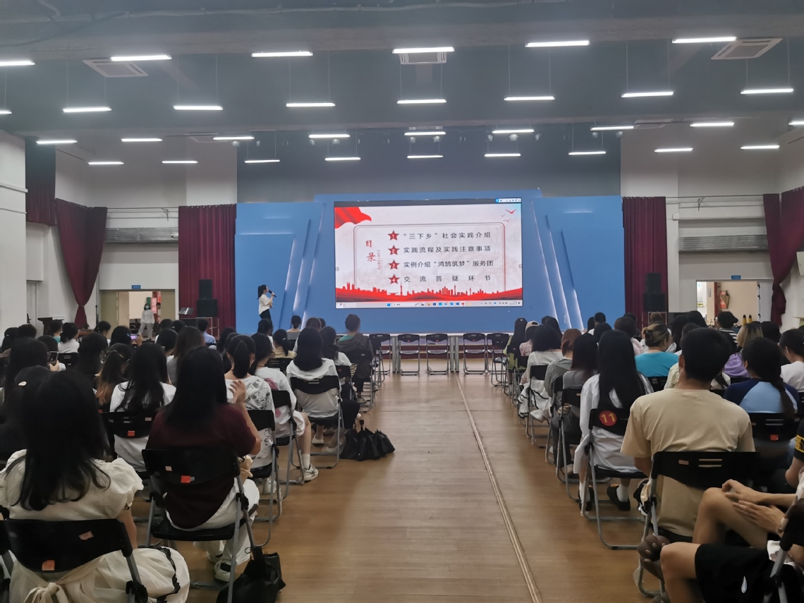 6月26日下午,外国语学院在大学生活动中心一楼演艺厅举行2023年广西大学生志愿者暑期文化科技卫生“三下乡”社会实践活动启动仪式,学院2021级全体学生参加启动仪式。