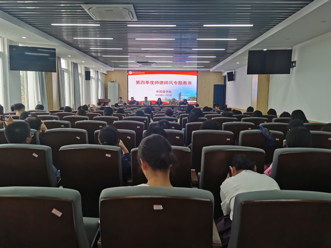 11月3日,学院在花江校区第三教学楼3305会议室开展2023年第四季度师德师风专题教育。会议由学院党委书记杨丹江主持,学院全体教职工参加会议。
