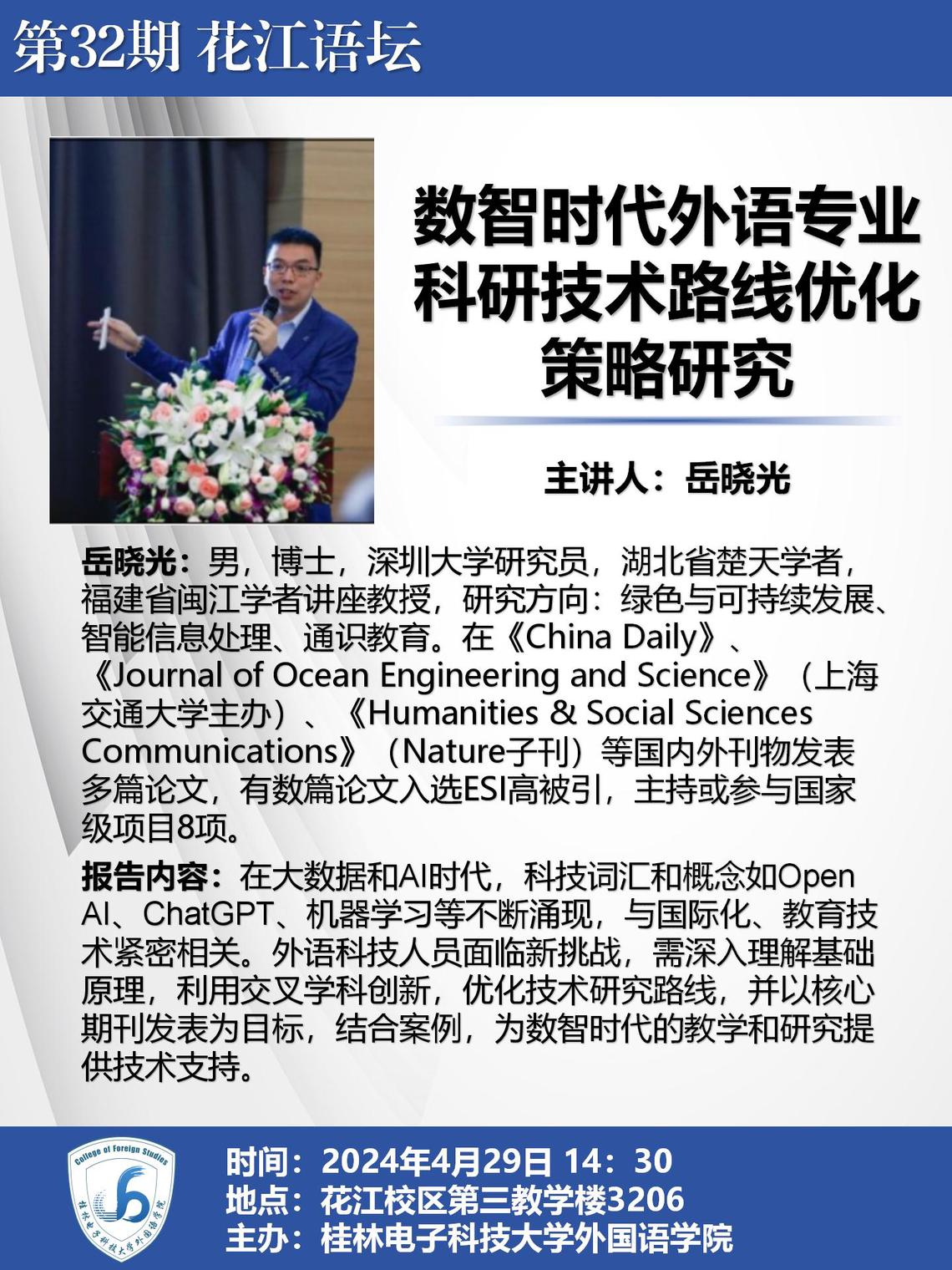 【第32期花江语坛】数智时代外语专业科研技术路线优化策略研究