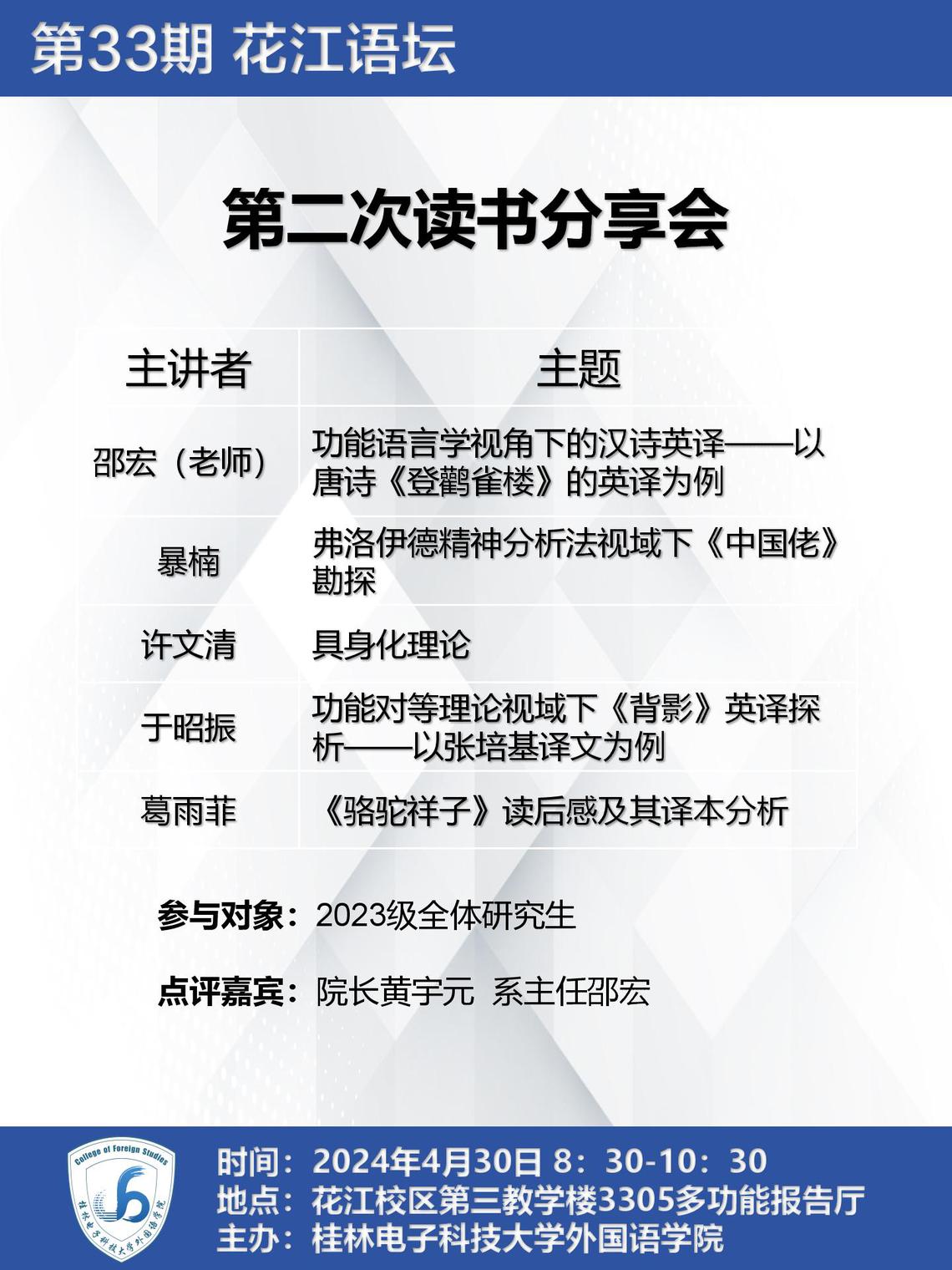 【第33期花江语坛】第二次读书分享会