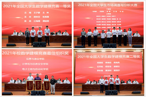 启动仪式上,与会嘉宾为2021年全国大学生数学建模竞赛、全国大学生市场调查与分析大赛等获奖单位和个人代表进行了颁奖。