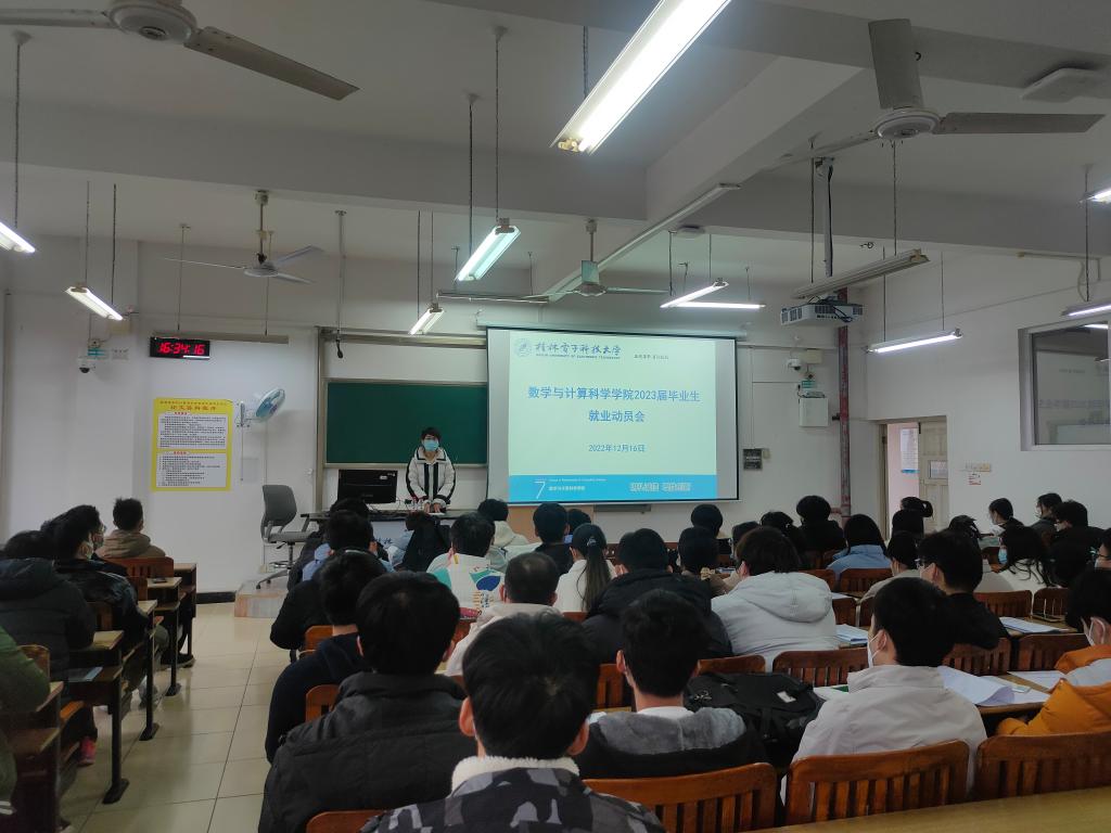 12月16日下午,数学与计算科学学院在花江校区第六教学楼305室召开2023届毕业生就业工作推进会,对毕业生就业工作进行再动员、再部署。学院党委书记龙雪梅、副书记龙腾飞、毕业班辅导员及未就业学生180余人参加会议。