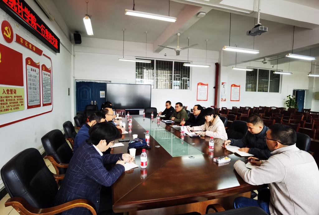 座谈会上,刘期怀代表学院对黄再堂一行表示欢迎,并介绍了学院的基本情况。随后,双方就公共数学教学管理、数学建模培训及参赛、学生实践实训及创新创业、师资队伍建设等内容进行了深入交流。双方均表示将以此次调研为契机,在原有良好合作基础上,进一步深化多领域务实合作,努力双方的互利共赢。