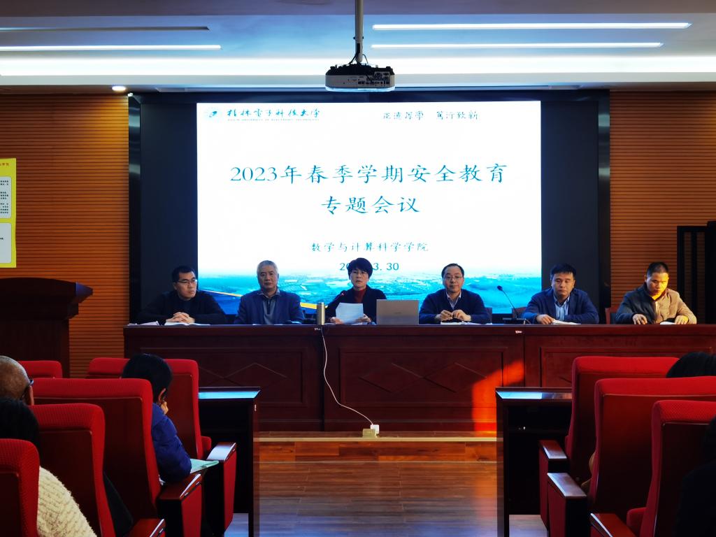 3月30日下午,数学与计算科学学院在花江校区第六教学楼306报告厅召开2023年春季学期安全教育专题会议,学院全体教职工参会。