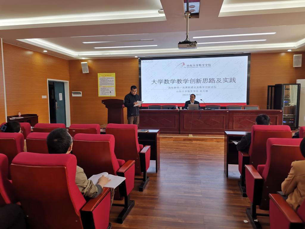 3月20日下午,我院邀请山东省教学名师、山东省课程思政示范课程负责人、山东大学泰山学堂卓越教授、山东大学数学学院张天德教授来我院作题为《大学数学教学创新思路及实践》的报告。报告在花江校区第六教学楼306报告厅举行,数学与计算科学学院副院长吴孙勇教授主持本次报告会,近两年承担公共数学教学任务的教师参加本次研讨会。