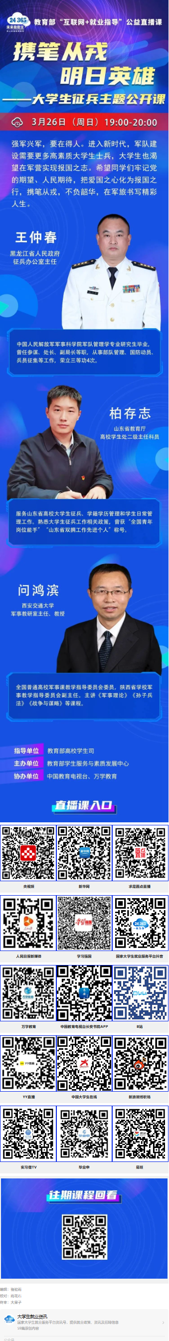 教育部24365就业公益直播课:携笔从戎,明日英雄——大学生征兵主题公开课