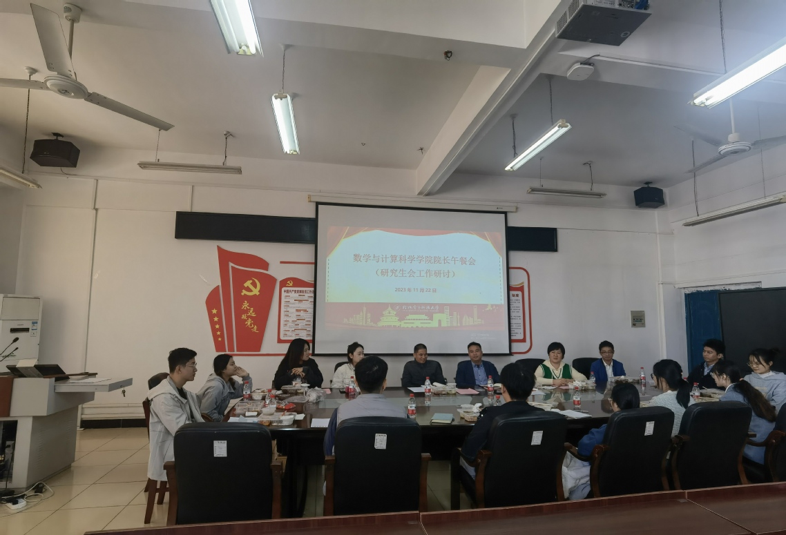 11月22日中午,数学与计算科学学院在花江校区第六教学楼506会议室举办第五期院长午餐会。学院副院长祝光湖、副书记龙腾飞、研究生辅导员熊丽娜以及研究生会全体委员、在校研究生代表参加。
