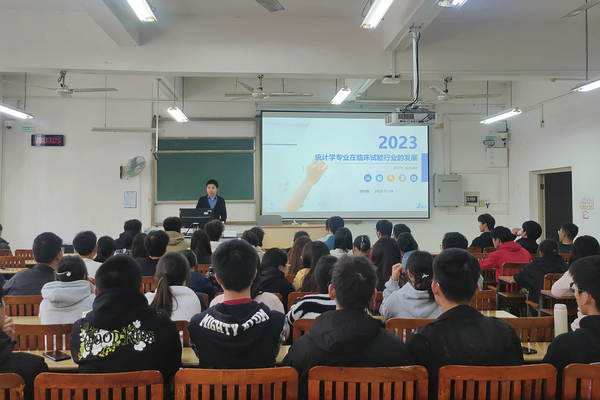 徐钊斯从应用统计学专业发展与行业人才需求出发,详细介绍了统计学在临床医药试验与数据统计分析领域的应用前景,并结合自己的创业经历讲述了专业理论学习、项目实习实训和沟通协调能力对个人职业发展的重要性,引导广大同学提高专业自信,努力学好专业。会上,徐钊斯还对同学们提出的问题和困惑一一作了解答。