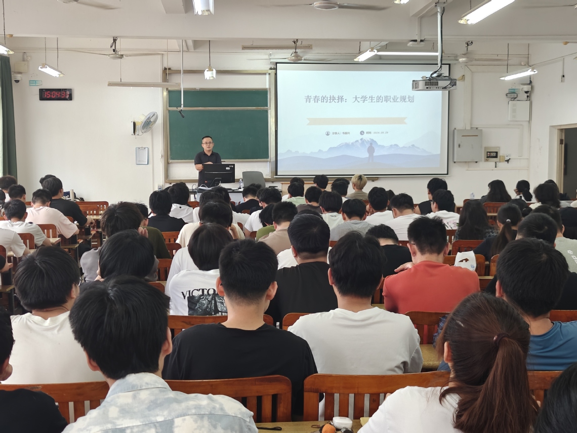 近日,数学与计算科学学院邀请柳州市城中区柳东村驻村第一书记、23007301班校友导师韦振兴回校开展职业生涯规划讲座。学院领导、年级辅导员和200余名本科生参加讲座。