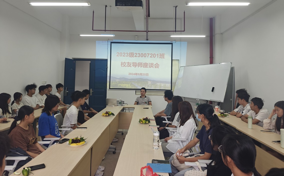 9月25日,数学与计算科学学院2011届统计学专业毕业生、广州静远医药研究有限公司创始人兼总经理、23007201班校友导师徐钊斯,在花江校区慧谷4#301研讨室与班级学生开展座谈。