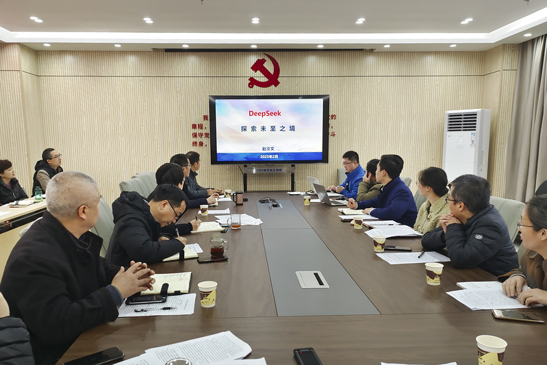与会人员重点围绕人工智能背景下创新人才培养模式的重构、教师智能教育素养提升机制、智能技术驱动学科交叉研究、基于AI的学院治理体系构建等议题展开深入讨论,并结合数学学科特色,就DeepSeek本地知识库建设、数学领域大模型研发、智能体构建及安全部署等关键技术问题进行了论证。