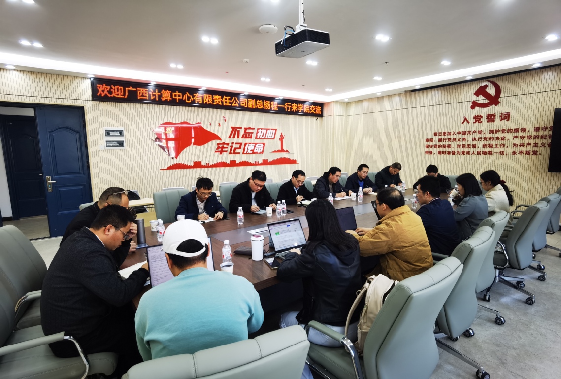 3月20日,广西计算中心有限责任公司副总经理杨程一行到数学与计算科学学院交流,学院相关负责人、教师代表,研究生院相关负责人及计算机与信息安全学院教师代表参加座谈。