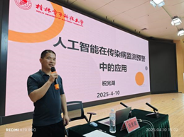 应广西壮族自治区疾病预防控制局和广西壮族自治区疾病预防控制中心的邀请,4月10日学院教师祝光湖研究员在全区传染病监测预警培训班上,作了题为“人工智能在传染病监测预警中的应用”的报告。全区疾控及医疗机构200余名骨干参会。3小时的讲座中,祝光湖系统讲解了AI如何推动传染病监测从传统流调向智能分析升级,重点剖析机器学习、时空数据挖掘等技术在疫情预警和传播预测中的实践应用,并分享团队在传播建模、防控评估等方面的创新成果及落地案例,为智慧防疫提供新思路。