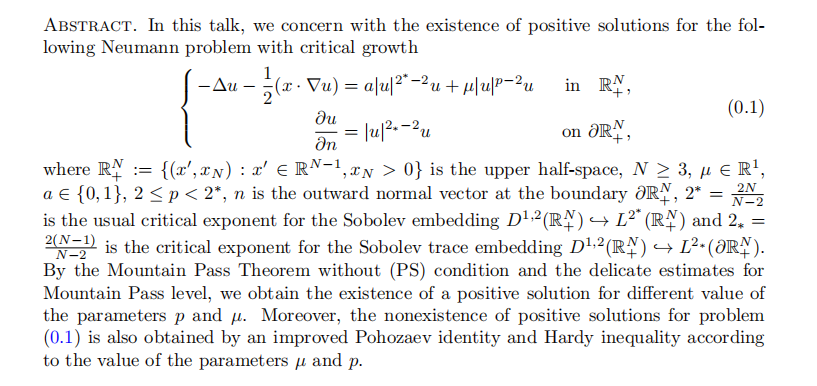 报告题目:Positive Solution for a Critical Neumann Problem