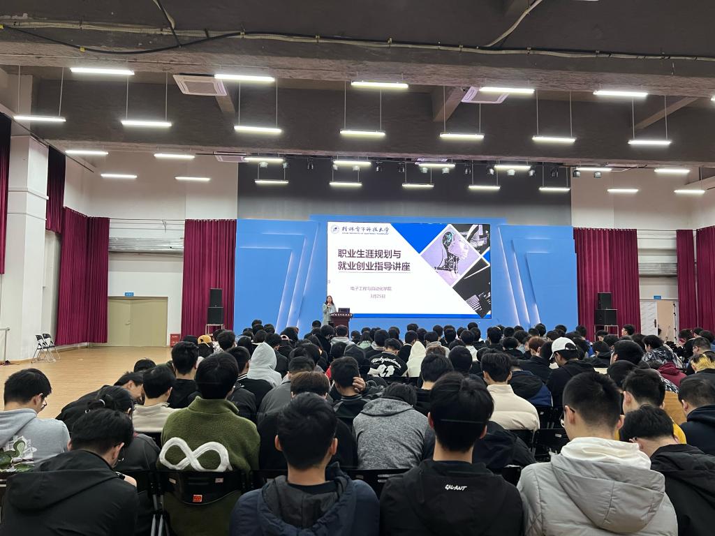 3月25日下午,电子工程与自动化学院在红亮大学生活动中心演艺厅举行职业生涯规划与就业指导讲座,学院党委副书记段筱雨、副院长胡放荣、辅导员及2020级全体学生参加。