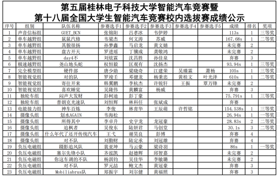 三亿官方官网三亿(中国)_三亿(中国)第五届智能汽车竞赛暨十八届全国大学生智能汽车竞赛校内选拔赛已顺利完成,经过评委审核,现将各组选拔赛成绩公示如下,公示期为7天。