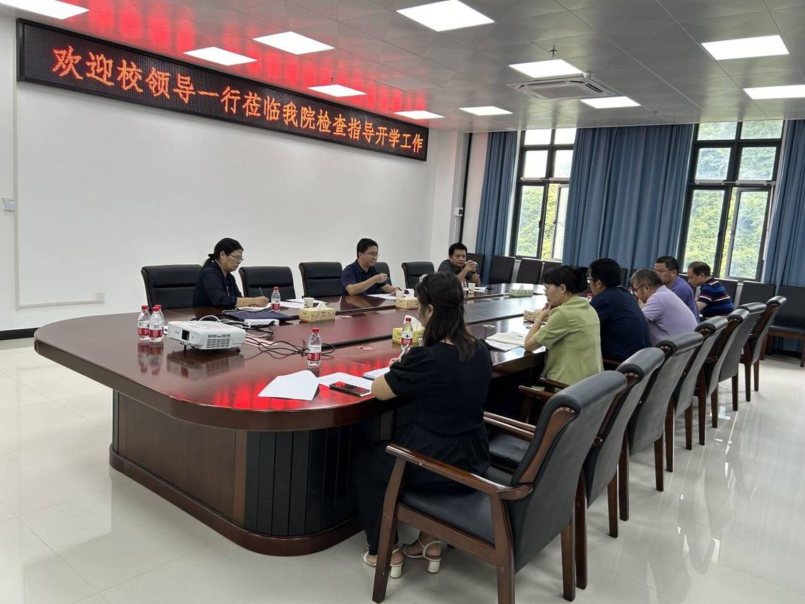 9月4日上午,我院邹书记、吴院长带领学院领导班子、辅导员及教学秘书深入课堂,对新学期学生到课率、教师准备情况、教学质量、课堂纪律、教材到位等情况进行检查,并进行随堂听课。常亮副校长一行来我院听取开学情况检查汇报,学院领导对师生到位、教学、科研、学科 、人事等方面工作情况分别进行了分析和汇报。校领导对学院工作给予了肯定,并对学院以后的工作重点提出了很好的要求及建议。