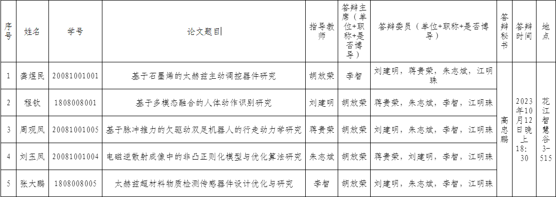 2023年电子工程与自动化学院博士研究生将进行学位论文预答辩公告