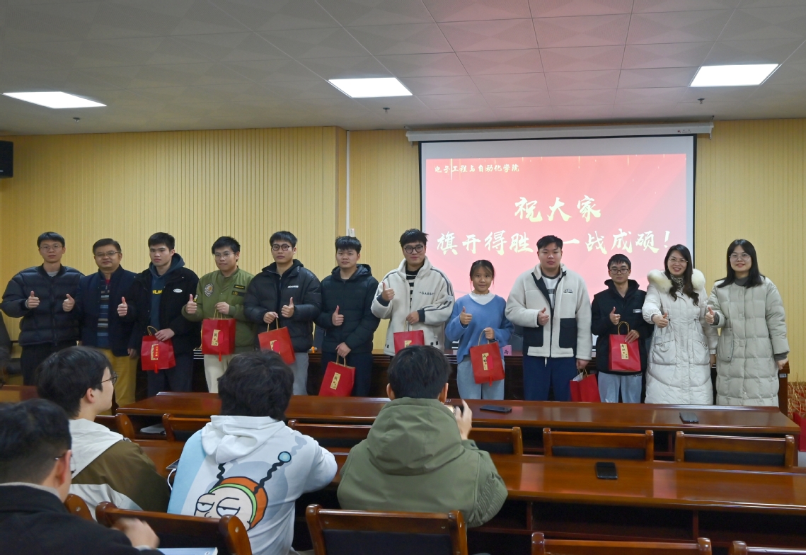 为进一步做好学院2025届学子考研服务工作,营造良好考研氛围,12月12日中午,电子工程与自动化学院在花江智慧谷3-607会议室举行2025届考研出征仪式。学院领导、各年级辅导员以及全体考研同学参加出征仪式。