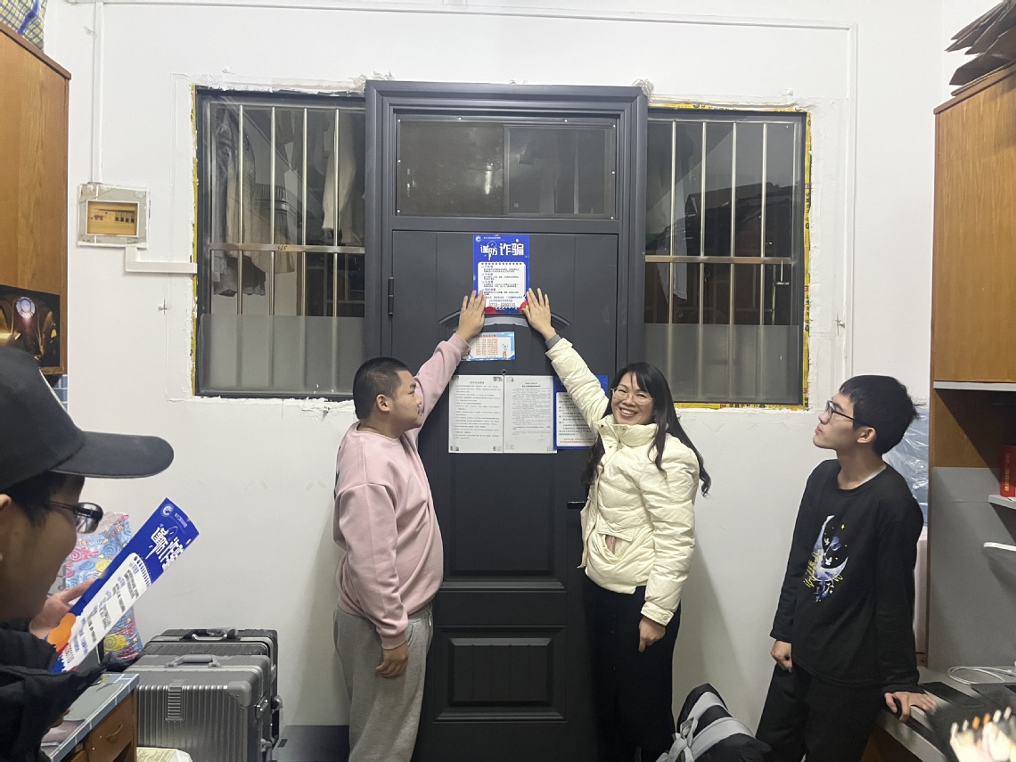 近日,学院联合灵川县派出所派驻学院反诈联系官对学院所有本科生宿舍进行期末安全隐患排查工作。学院党委副书记、各年级辅导员和学生干部代表一同参与排查。